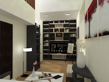 也隔出一間小隔樓 利用系統櫃及鐵件做為裝飾 也是櫃子 也是爬梯